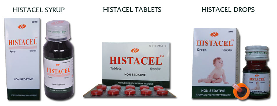 Histacel is a proprietary polyherbal formulation with well documented Preclinical and Clinical studies for the treatment and Management of Allergic Bronchitis, Allergic Rhinitis and Common cold. No side effects or adverse reactions are reported and it has a wider safety window. It is NON SEDATIVE and can be prescribed for all age groups (Infants, Children and Adults)..